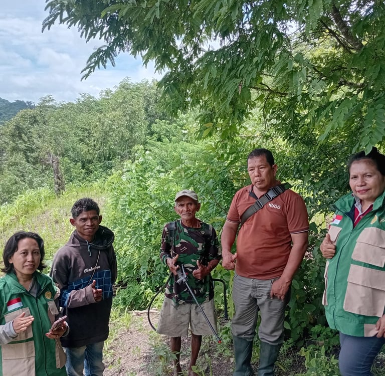 The Nusa Timur Mandiri Foundation (YNTM), in collaboration with the Bikomi Utara District Agricultural Extension Officer, conducted a spraying activity on the garden belonging to Mr. Yakobus Saba, located in Napan Village, RT 02/RW 01, Bikomi Utara District, North Central Timor Regency, on Thursday (January 8, 2026).